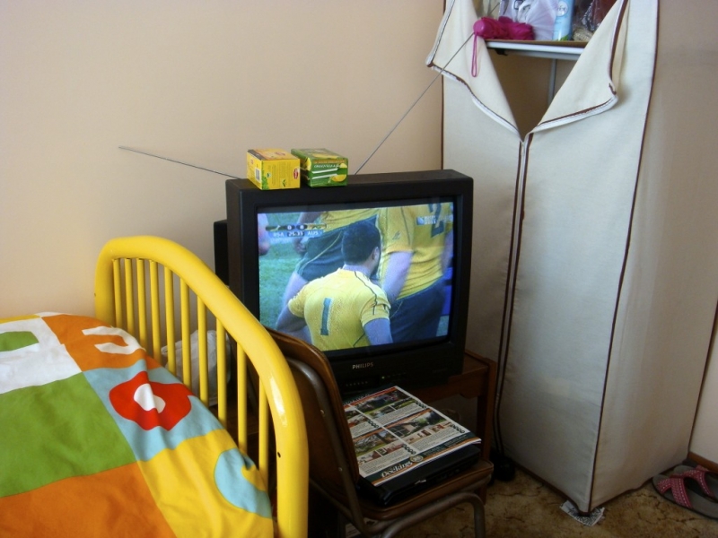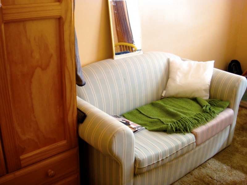 房间内有一双人沙发,电视,书桌,两个衣柜,床头柜,单人床。