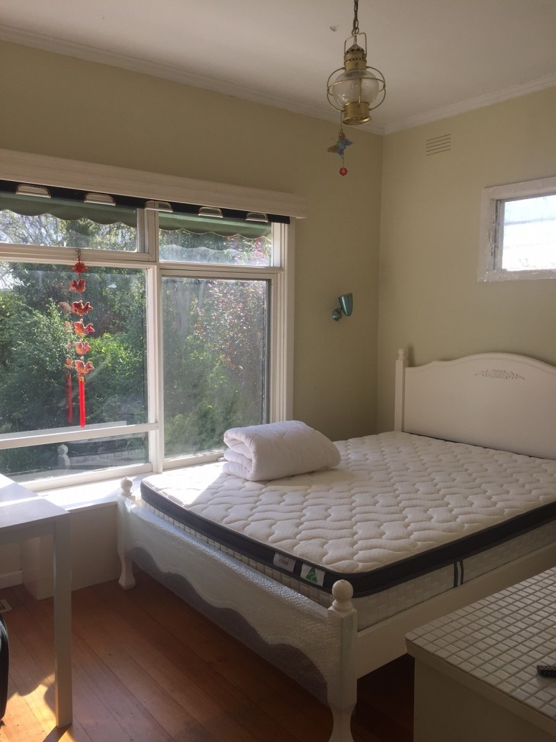 房子在deakin 2号们正对面。 走到学校仅需4分钟 毗邻 burwood highway 步行可达tram 75 ,家附近有bus 直达 Boxhill shopping Centre 。家附近也有各大shopping centre。 房子干净整洁 现有三个女孩子,加你四个人,室友非常好相处。 网络无限 OPTUS CABLE . 网络非常快。 家具齐全 拎包入住 。 出租一温馨阳光大房间,阳光充足,光线良好,隔音效果好。 双人床 床垫也是四个月前新买的。 家里有暖气。冬天很温暖。 现招一人入住。家里没有Couple。 145刀/week ,share 水电煤网。随时可以入住。 欢迎来看房, 详情请询 0433661918 。 Wechat 907622819