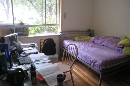 短期出租 一个性价比超高的大主卧(18平方米)朝北,通风,光线好,离Monash Clayton campus只隔一条马路 (可以在学校地图上找到!), 房间里配有一个queen size 的床, 独享入壁大衣柜,空调,90L冰箱(全新)和25寸电视(照片上的只有17寸,已经升级), 2010年11月20日以后即可入住,租期最晚到明年3月,适合college和语言学生。 房间只要135一周【包含所有费用(宽带上网,水,电)!!】只能一人住